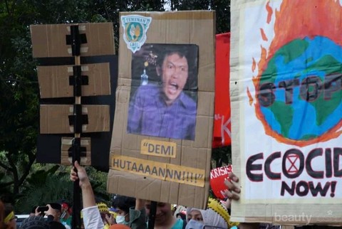 Berkat kreativitas mahasiswa, kalimat Arya Wiguna tersebut diubah susunan katanya menjadi 'Demi Hutan'. Spanduk demo yang satu ini menyinggung soal masalah kebakaran hutan yang terjadi di Riau dan Kalimantan. Mahasiswa berharap pemerintah segera menuntaskan masalah tersebut.