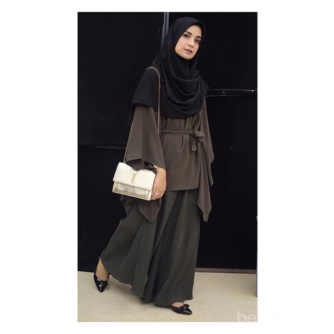 Gaya Shireen yang anggun dan elegan terlihat dalam balutan maxi kaftan berwarna silver yang dipadankan dengan hijab berwarna senada. Gaya Shireen ini sia kamu contek sebagai inspirasi fashion untuk kegiatan formil maupun santai.