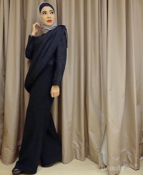 Bahkan, tampilannya masih tetap terlihat elegan nan cantik walaupun ia mengenakan hijab syar'i.