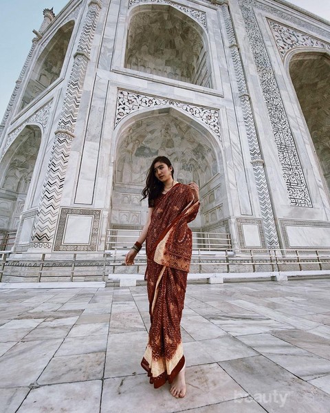 Foto: https://www.instagram.com/febbyrastanty/Last but not least, enggak hanya berhasil mengabadikan momen dengan latar belakang Taj Mahal tapi Febby Rastanty juga bisa berfoto mengenakan pakaian khas India. Busana cantik bernama Sari dipakai Febby saat berada di area Taj Mahal. Warna Sari yang cerah dan cantik cocok dipadukand dengan latar belakang tempat yang berwarna putih bersih.