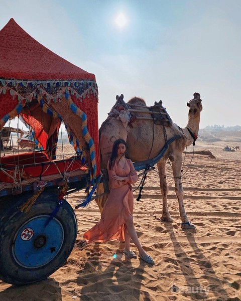 Foto: https://www.instagram.com/febbyrastanty/Cuaca siang hari yang terik enggak membuat pesona Febby Rastanty luntur. Liburan artis cantik yang satu ini makin berkesan dengan menaiki kendaraan tradisional India yang ditarik langsung oleh unta. Memakai outfit simpel berupa long dress warna peach, kecantikan Febby tidak perlu diragukan lagi.