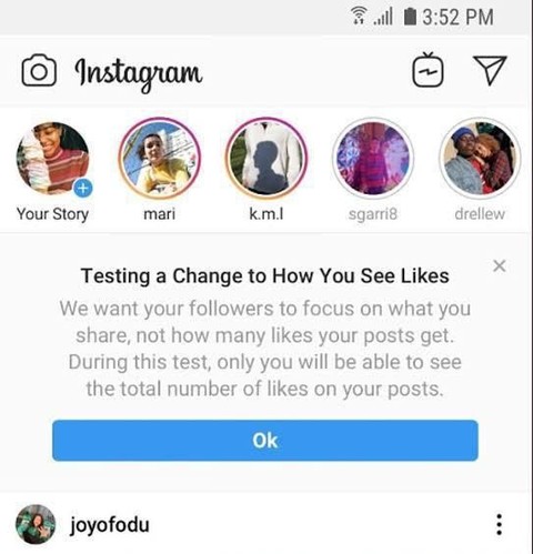 Instagram beralasan penyembunyian like ini akan mengurangi kompetisi mengejar jumlah like di Instagram, sehingga pengguna akan lebih fokus pada konten yang diunggah, bukan sekadar adu banyak like.