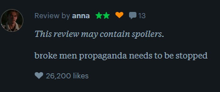 Salah satu hal yang buat Celine paling terganggu adalah cara orang membicarakan John yang diperankan oleh Chris Evans, sosok pria sederhana yang jadi pilihan Lucy. Banyak komentar yang menyepelekan John dengan label broke man atau broke boy. Padahal, menurut Celine, John adalah karakter yang tulus mencintai Lucy dan ditampilkan dengan indah.