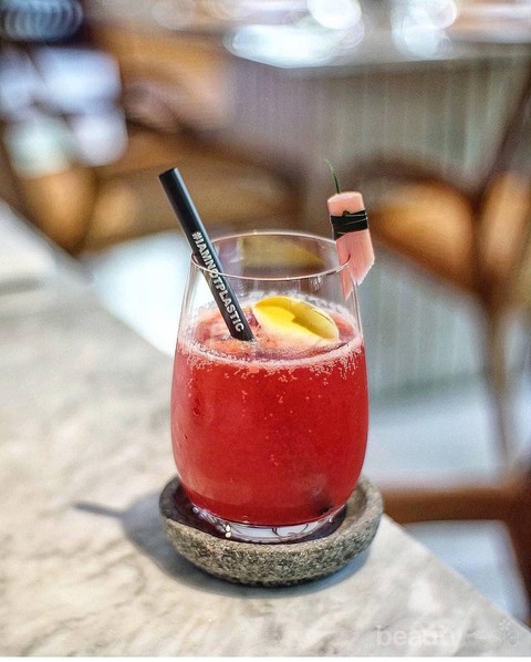 Restoran yang terletak di kawasan Kemang, Jakarta Selatan, ini mengganti sedotan plastik dengan sedotan yang terbuat dari pati jagung. Selain meminimalkan penggunaan plastik, tentunya sedotan bahan pati jagung ini ramah lingkungan dan mudah didaur ulang.