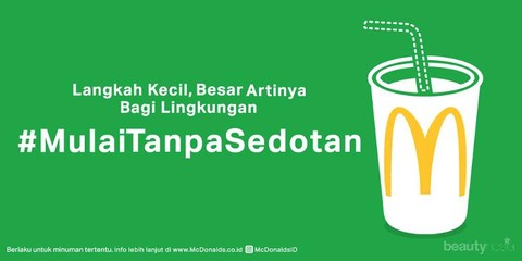 Foto: IstimewaSejak November 2018, McDonald's Indonesia memulai gerakan #MulaiTanpaSedotan yang bertujuan mengurangi penggunaan timbunan sampah plastik. Mereka memutuskan untuk tidak menyediakan sedotan plastik secara serentak di 189 gerai McDonald’s di seluruh Indonesia serta tidak memberikan sedotan kepada pengunjung, kecuali pembeli meminta dengan alasan khusus.