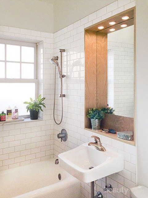 Memasang cermin di kamar mandi minimalis kamu ternyata memberikan efek besar lho ladies. Cermin terpasang di dinding kamar mandi akan memberikan ilusi kamar mandi yang lebih luas dan lega. Untuk tipsny, kamu bisa menggunakn cermin ukuran besar yang dipasang di dinding dekat pintu kamar mandi. Selain cermin, jendela yang bisa terbuka juga akan memberi ilusi luas pada kamar mandi minimalis kamu.