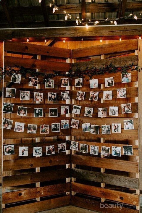 Untuk photo booth kamu gak perlu mahal-mahal pakai dekorasi mewah, cukup dengan modal cetakan foto saat kamu dan pasangan bersama. Tinggal di rapikan pada tatanan kayu berwarna coklat. Tinggal simpan deh d tempat yang sesuai dengan dekorasi kamu.