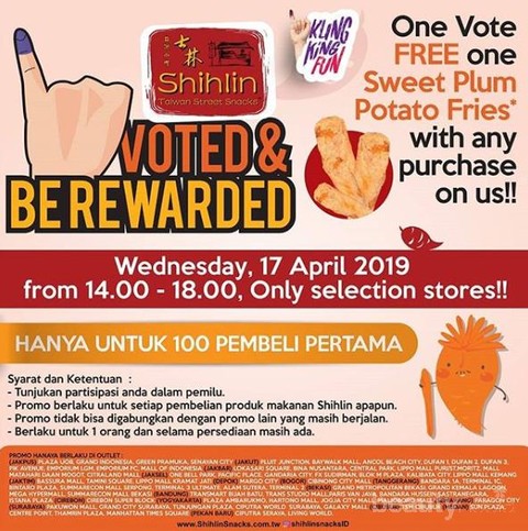 Foto: https://www.instagram.com/shihlinsnacksid/Pecinta street food, jangan sampai terlewat promo satu ini. Setiap pembelian Shihlin, kalian berhak mendapatkan satu sweet plum potato fries. Mengenai detailnya promo ini langsung cek gambarnya ya!