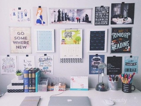 Dekorasi meja kerja yang satu ini mungkin sangat menginspirasi kamu untuk rajin bekerja. Tips menata meja kerja kali ini adalah dengan meletakkan beberapa foto yang unik di dekat meja kerjamu. Nah, untuk pemilihan foto ini bisa kamu sesuaikan dengan keinginanmu. Kamu bisa memasang foto-fotomu bersama dengan orang-orang tersayangmu, seperti keluarga, sahabat, pasangan, atau lainnya.