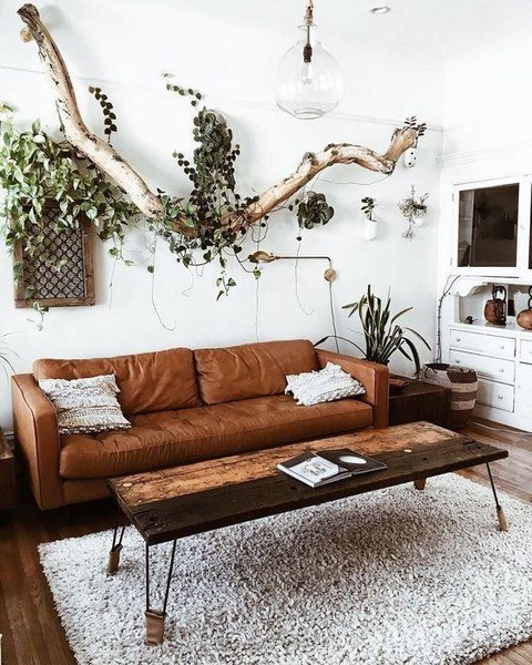 Foto: https://id.pinterest.com/pin/813322013933378568/ Nah, yang terakhir ada dekorasi rumah unik dari bagian ruang menonton. Ladies bisa lihat adanya tambahan ranting pohon dengan ukuran agak besar yang tertempel di dinding bagian belakang sofa. Tidak lupa ditambahkan dedaunan supaya kesannya lebih hidup. Pemilihan warnanya pun cukup putih dan coklat tua. Perpaduan yang begitu klasik dan alami sangat terlihat disini.
