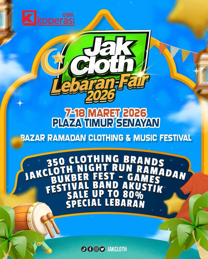 JakCloth Lebaran Fair 2026 merupakan festival fashion tahunan Jakarta Clothing Expo yang selalu dinanti jelang Ramadan dan Lebaran, khususnya bagi para pencinta streetwear dan fashion lokal. Event ini menghadirkan ratusan brand clothing Indonesia dengan penawaran diskon besar, bazar kuliner, spot belanja, hingga hiburan.