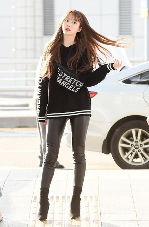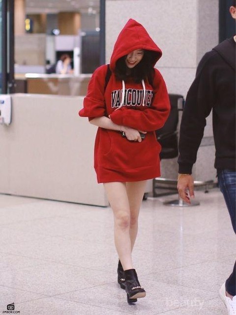 Foto: https://id.pinterest.comGaya fashion no pants memang cukup populer di kalangan para idol K-Pop wanita. Selain terlihat lebih stylish, gaya tidak memakai celana atau bawahan ini memang pas untuk tampilan yang simple. Hoodie menjadi salah satu fashion item yang kerap dipakai untuk gaya fashion no pants ini. Taeyeon SNSD salah satu yang mengenakannya, ia tampak cantik dan seksi dengan hoodie berwarna merah yang dipadukan dengan ankle boots hitam.