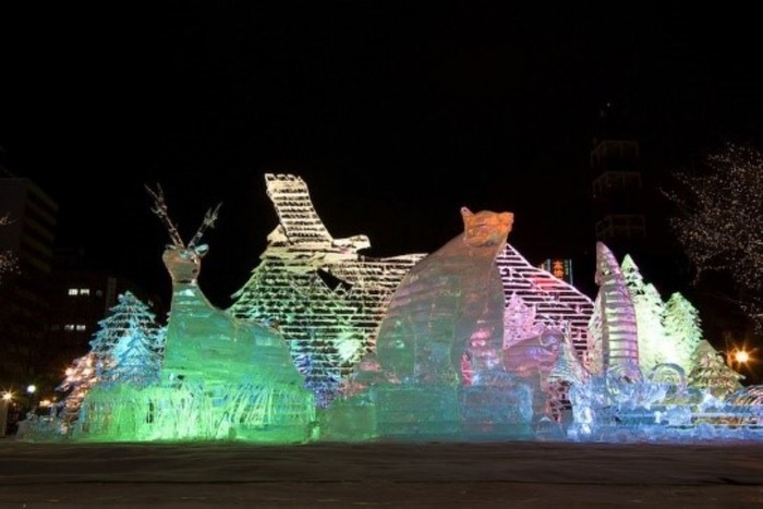 Tak berbeda jauh dengan festival patung es dan salju yang ada di Harbin, China, ternyata di kota Sapporo, Jepang juga ada pagelaran festival es yang serupa. Instalasi es besar yang ada di sana akan disinari oleh cahaya lampu warna-warni yang begitu apik saat dilihat pada malam hari.