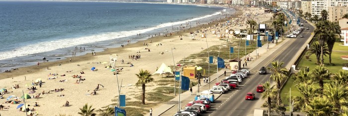 Pantai-pantai terkenal di Chili antara lain El Norte Chico South hingga Region VII yang terletak di kawasan del Maule. Chili memiliki iklim Mediterania yang sejuk sehingga para pengunjung bisa menikmati hari yang hangat dan malam yang sejuk di musim panas.