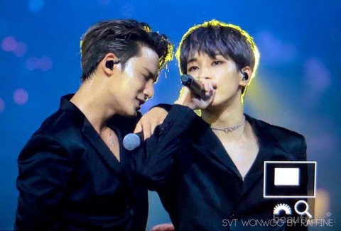 Foto: IstimewaMingyu dan Wonwoo tak pernah malu memperlihatkan kedekatan personal mereka. Bahkan setiap
