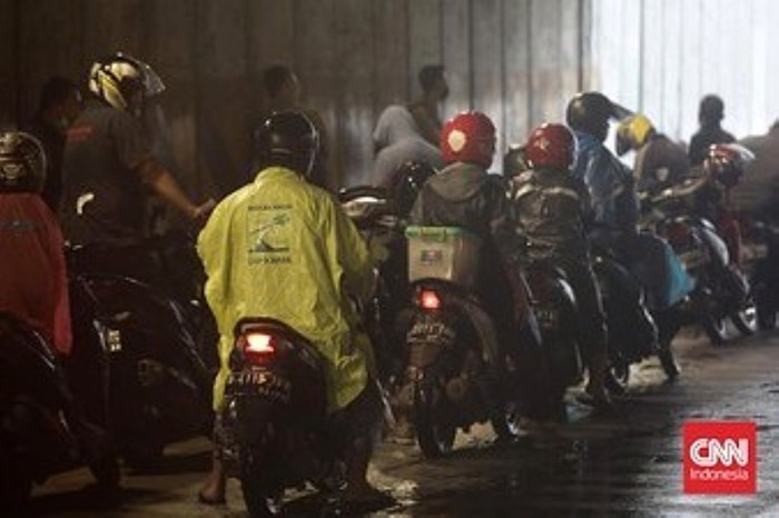 Meskipun sebagian orang berhenti untuk menggunakan jas hujan, tetapi hal tersebut tidak diperkenankan. Penumpukan kendaraan di bawah jalan layang bisa jadi pemicu kemacetan dan berisiko menyebabkan kecelakaan.