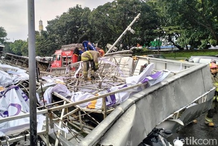 Papan reklame raksasa roboh saat hujan angin/ Foto: detikcom/Bima Bagaskara