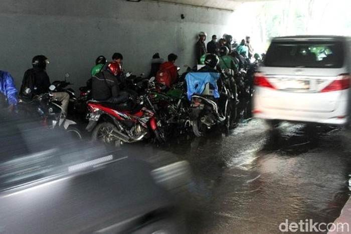 Pemandangan pengguna jalan berlindung di bawah flyover atau underpass ketika hujan turun bukanlah hal yang baru. Namun, berteduh di bawah jalan layang ini sebenarnya tidak direkomendasikan karena dapat mengganggu ketertiban lalu lintas.