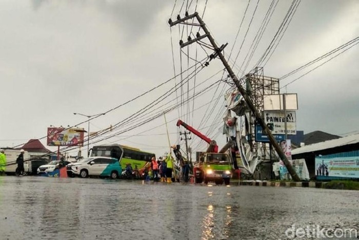Tiang listrik yang nyaris tumbang saat hujan/ Foto: detikcom/Pradito Rida Pertana
