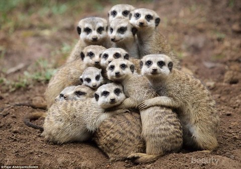 Meerkat ini menggerombol beramai-ramai agar mereka tetap merasa hangat. Mereka berbagi kehangatan satu sama lain.