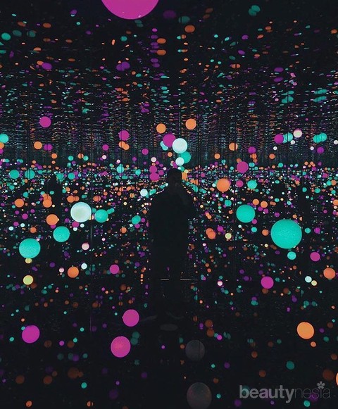 Ketika kamu memasuki ruang ini kamu akan merasa seperti berada di dimensi penuh warna dan tanpa batas, sebab ruangannya dilapisi cermin sehingga cahaya yang terpantul seakan-akan tidak berujung.