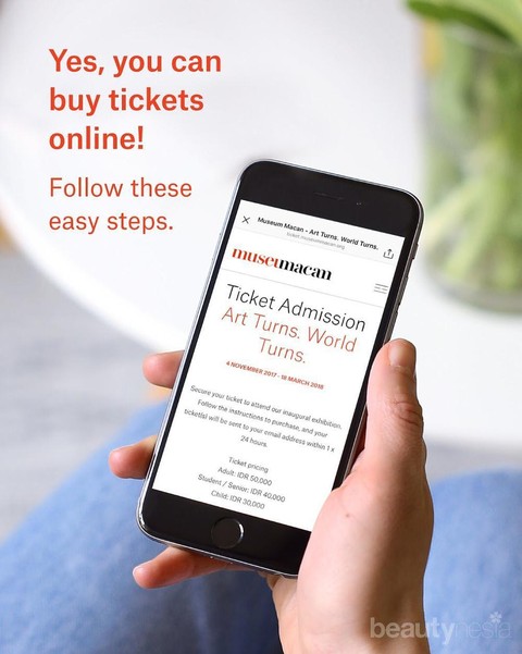 Untuk membeli tiket di Museum MACAN, kamu bisa membeli langsung di loket atau secara online di https://www.museummacan.org/tickets, lho! Adapun jika kamu mencari harga spesial bisa menghubungi [email protected] saja. Berikut ini daftar harga tiket masuk terbaru tahun 2019 untuk masuk ke Museum MACAN.