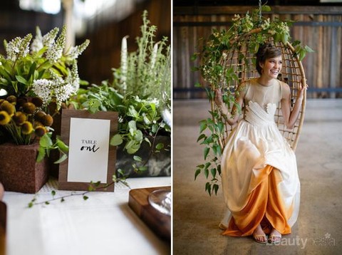 Pernikahan yang indah selalu identik dengan bunga hidup. Biarpun harganya relatif mahal, bahkan beberapa pasangan nggak ragu untuk impor bunga tertentu. Padahal, pernikahan yang indah nggak harus mengorbankan bunga berpestisida yang mencemari udara dan tanah, lho! Kamu bisa memanfaatkan tanaman hijau yang mudah ditemukan di sekitarmu. Padukan dengan dekorasi menggunakan kayu untuk menciptakan tone yang earthy.
