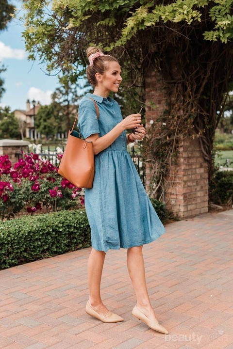 Foto: IstimewaAgar penampilan kamu lebih girly, kamu bisa kenakan dress yang ada di dalam lemari kamu. Kombinasikan dress dengan flat shoes dan leather tote bag, kamu juga bisa mencepol rambut kamu dengan hiasan bandana scarf.
