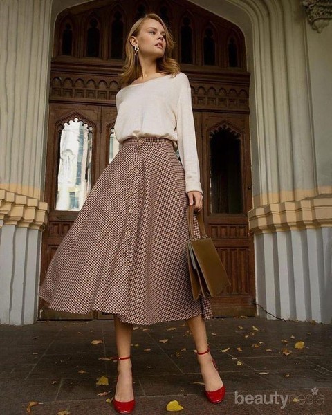Foto: IstimewaOutfit ini cocok untuk kamu yang ingin berpenampilan feminin. Kamu bisa kenakan wool skirt long yang dikombinasikan dengan atasanya kaos lengan panjang atau turtleneck. Kombinasikan juga dengan high heels agar tampak sempurna, tapi ingat jangan gunakan heels yang terlalu tinggi ya, ladies!