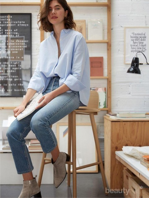 Foto: IstimewaOutfit dengan mengenakan kemeja dan celana jeans juga akan membuat penampilan kamu semi formal. Apalagi ditambah dengan boot heels ankle, wah dijamin penampilan kamu bakal oke banget, ladies!