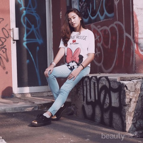 Foto: https://www.instagram.com/salshabillaadr/3. Siapa sih yang enggak suka Disney? Disney lovers bisa banget nih contek gaya casual Salsha yang satu ini. Kamu cuma perlu Minnie Mouse tee, celana jeans, dan sepatu sneakers saja!