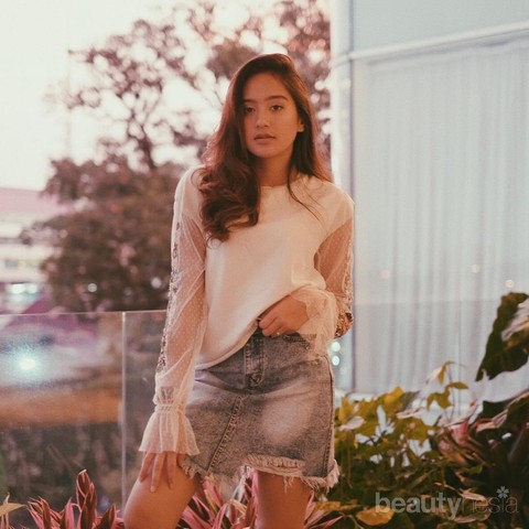 Foto: https://www.instagram.com/salshabillaadr/6. Last but not least. Kamu juga bisa coba perpaduan blouse dengan transparent sleeves and floral detail ini dengan mini denim skirt seperti ini kalau ingin tampil hits seperti Salsha!