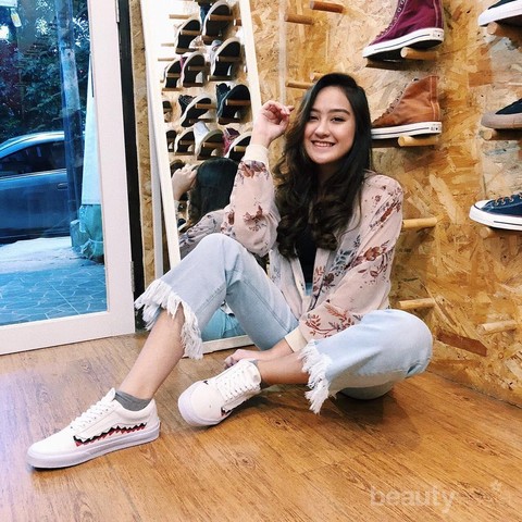 Foto: https://www.instagram.com/salshabillaadr/4. Fringe jeans, floral outerwear, ditambah sneakers. Ternyata bergaya hits enggak perlu pakai ribet, ya!