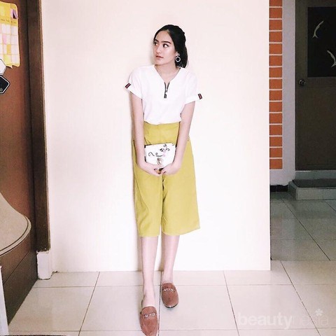 Foto: https://www.instagram.com/salshabillaadr/5. Gaya hits yang kalem juga ada nih. Salsha memadukan blouse dan midi cullotes dan juga pointy sandals. Enggak lupa juga mini bag dan juga aksesoris berupa round earrings untuk melengkapi penampilannya!
