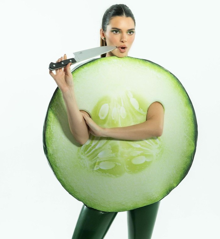 Namun, puncak humornya adalah ketika Kendall Jenner berdandan sebagai irisan mentimun untuk Halloween.