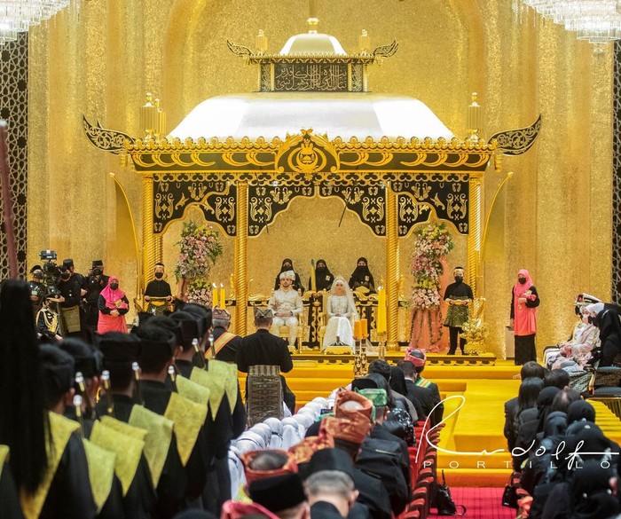 Pernikahan kerajaan Brunei Putri Fadzillah dan Abdullah Nabil Mahmoud Al-Hashimi dengan adat melayu/Foto: Instagram.com/rudolfportillo