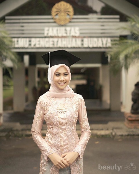 Jika kamu menyukai nuansa natural dengan karakter warna earth tone, pilihan warna nude akan menjadi pilihan yang tepat. Pilihlah warna brown, cream, tan, atau sienna untuk wajah yang terkesan lebih cerah dan fresh. Padukan warna hijab ini dengan makeup natural berdetail highlight yang manis. Dijamin tampilan wisuda kamu akan terkesan sangat elegan!