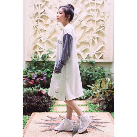 Aksesori juga tak kalah penting bagi Prilly. Meski ia senang meng-highlight penampilannya dengan tas, namun ia juga sering mengaplikasi sepatu sneakers dengan gaya yang super kasual. Nah, kali ini ia padukan dengan midi dress berbahan kaos yang membuat tampilannya tampak simpel.