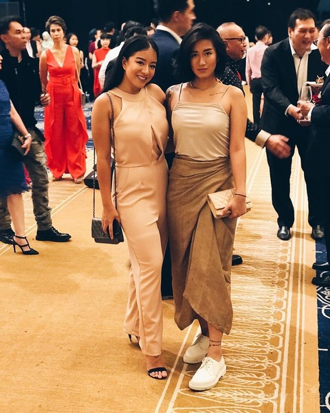 Foto: https://www.instagram.com/bubblerey/Meskipun kerap tampil dengan pakaian sederhana, Reyca dan Renatta juga bisa tampil anggun, lho. Sama-sama menghadiri sebuah acara, keduanya kompak menggunakan outfit dengan warna senada. Reyca memilih jumpsuit dan heels berwarna hitam, lain halnya sang adik yang lebih memilih tank top dengan bawahan rok serta sneakers putihnya. Dengan makeup yang nggak berlebihan, aura kecantikan keduanya tetap terpancar ya, Ladies.