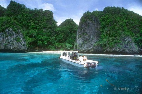 Terakhir, ada wisata air di tebing Puruk, Papua Barat. Berada di balik karang besar, wilayah air tenang seperti kolam ini cukup luas untuk dijadikan lokasi bermain air. Dikelilingi hutan, kamu juga akan mendengar kicauan burung dan hewan-hewan lain. Seru banget, deh!