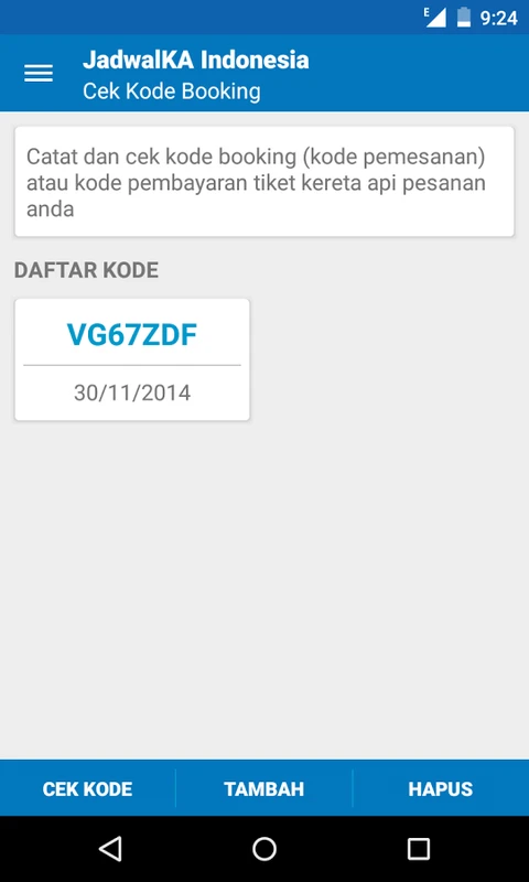 Foto: https://play.google.com/store/apps/details?id=gulajava.jdwl Cek Kode Booking, untuk mengecek dan mencatat kode booking atau kode pesanan tiket kereta api anda agar tidak lupa ketika ditukarkan di stasiun.https://m.mobogenie.com/download-jadwalka-indonesia-3131686.html |