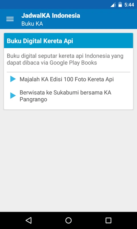 Foto: https://play.google.com/store/apps/details?id=gulajava.jdwl Minasan dapat membaca informasi seputar kereta api via Google Play Books.