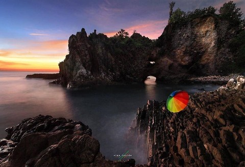 Selain keindahan alam, di Pantai Malimbu terdapat sebuah spot yang unik, menarik dan menawan. Para wisatawan sering menyebut tempat ini dengan sebutan "Karang Bolong Malimbu". Sebutan ini bukan tanpa alasan, sebab di sana terdapat sebuah karang besar yang berlubang. Keindahan bebatuan karang yang eksotik akan membuat kamu terpesona saat melihatnya.
