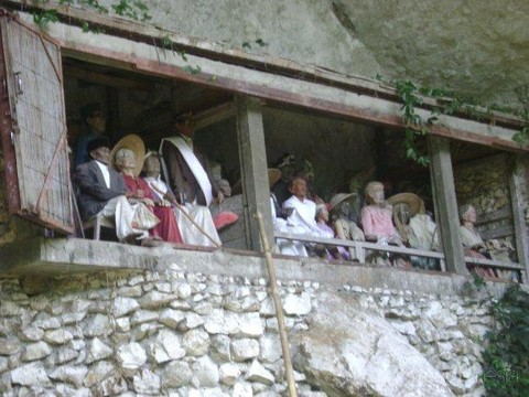 Foto: https://www.jalanjalanyuk.com/londa-makam-di-dinding-batu/ Sama dengan Lemo, Londa adalah tempat pekuburan dinding berbatu dan patung-patung (tau-tau). Di dalamnya terdapat gua dengan banyak tengkorak kepala manusia. Obyek Wisata Londa yang berada di desa Sandan Uai Kecamatan Sanggalangi' berjarak 7 km dari kota Rantepao, arah ke selatan, adalah kuburan alam purba. Gua yang tergantung itu, menyimpan misteri yakni Erong puluhan banyaknya, dan penuh berisikan tulang dan tengkorak para leluhur, tau-tau. Erong merupakan peti mati khas Toraja yang tertanam di dinding goa. Tau-tau adalah pertanda bahwa telah sekian banyak putra-putra Tana Toraja terbaik telah dimakamkan melalui upacara adat tertinggi di wilayah Tallulolo. Gua-gua alam ini penuh dengan panorama yang menakjubkan kurang lebih 1.000 m jauh kedalam, dapat dinikmati dengan petunjuk guide yang sudah terlatih dan profesional.https://www.jalanjalanyuk.com/londa-makam-di-dinding-batu/ |