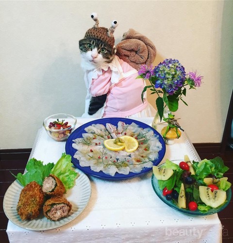 Foto: IstimewaSang owner selalu memotret keseharian kucing-kucingnya ini menggunakan kostum cosplay yang didandani dengan super stylish, lho! Nggak hanya itu, owner nya pun selalu menata berbagai kelezatan hidangan makanan di atas meja makan didampingi dengan kucing-kucingnya yang telah didandani tersebut, uniknya kucing-kucing tersebut tetap tenang, ramah dan tak agresif untuk menyentuh bahkan mengambil hidangan makanan di atas meja makan.