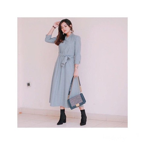 Feminim dress ini pun terlihat sangat kece digunakan oleh Audi. Ditambah dengan kesan Casual dengan sepatu boot dan sling bag dengan warna senada tersebut. Audi sudah persis dengan Korean Style 2018 ala selebriti Indonesia.
