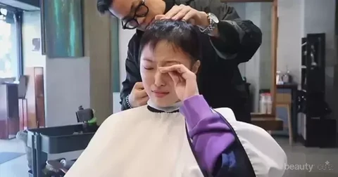 Foto: IstimewaSempat berusaha tegar, beauty vlogger ini pun akhirnya menangis saat rambutnya dibotaki. Sang kekasih pun setia mendampingi dan terus menyemangati dirinya.