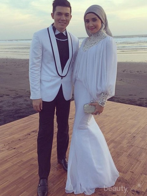 Foto: https://lifestyle.liputan6.com/Nah, jika kamu memutuskan untuk menggunakan dress, berikan jas untuk style couple pasanganmu. Kamu dapat menyamakan warna jas seperti style Zaskia dan Irwansyah, atau cukup dengan memadukan warna dress dengan kemeja pasanganmu.