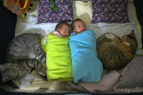 Foto: https://www.buzzfeed.com/summeranne/38-pictures-that-prove-cats-have-a-heart-of-gold?sub=2771221_2018793#.fb1yNqWJwB5. Kami bertugas menjaga bayi-bayi ini