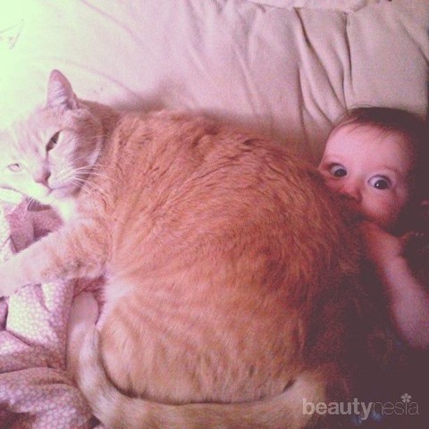 Foto: https://www.buzzfeed.com/summeranne/38-pictures-that-prove-cats-have-a-heart-of-gold?sub=2771221_2018793#.fb1yNqWJwB6. Aduh aku jadi enggak bisa gerak
